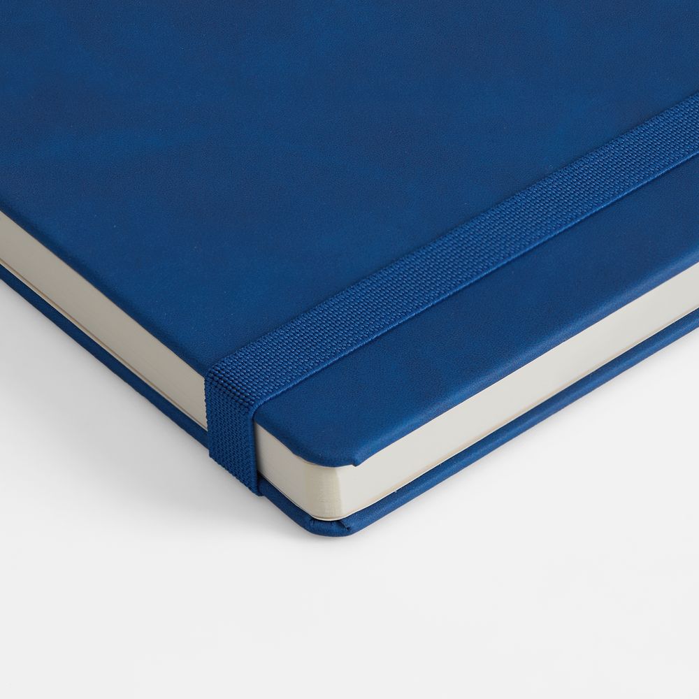 Ежедневник с твердой обложкой, выполнен из материала Nubuck Touch, темно-синий ХХ, дополнен ляссе темно-синего цвета.