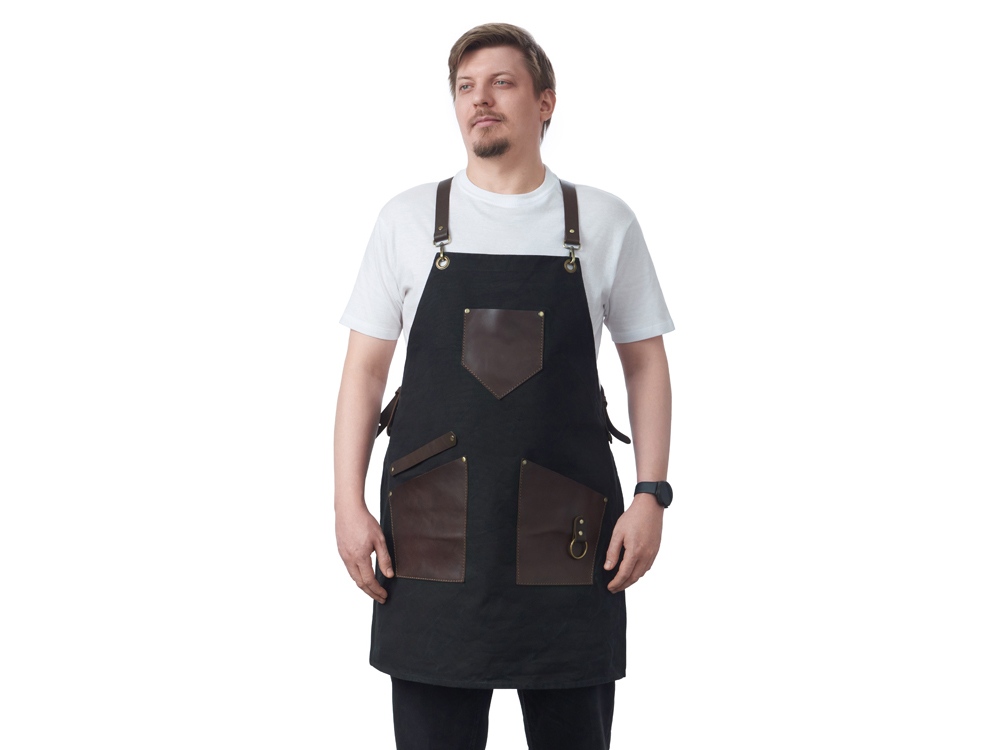 Фартук из канваса с ремнями из натуральной кожи – ваш надежный помощник на кухне и в творчестве! Ищете идеальный фартук, который объединит стиль, практичность и долговечность? Представляем вам наш фартук из смесового канваса с ремнями и карманами из натуральной кожи КРС. Это сочетание материалов обеспечивает не только элегантный внешний вид, но и надежную защиту от загрязнений. Преимущества: - Высококачественный материал: Канвас плотностью 450 гр/м² делает фартук прочным и долговечным. Хлопок с водоотталкивающей пропиткой защищает от пятен и легко чистится, что особенно важно на кухне. - Дизайнерская отделка: Белые полосы на ткани — это не случайность, а продуманное дизайнерское решение, создающее эффект легкой потертости. Этот элемент придаёт изделию характер и подчёркивает его стильный, винтажный облик. - Натуральная кожа: Ремни из натуральной кожи КРС обеспечивают надежную фиксацию и комфорт в носке. Они не только стильные, но и износостойкие, что гарантирует долгий срок службы. - Эстетика и стиль: Черный цвет фартука в сочетании с коричневыми кожаными элементами создает стильный и современный образ. Этот фартук подойдет как для профессиональной, так и для домашней кухни, а также для барбекю и других активных хобби. - Функциональность: Удобные карманы позволят хранить необходимые инструменты под рукой, а надежная фурнитура из сплава металлов обеспечивает прочность и долговечность конструкции. - Этот фартук – идеальный выбор для кулинаров, художников, садоводов или мастеров по дереву. Он станет отличным подарком для друзей и близких, которые ценят качество и стиль. Не упустите шанс добавить в свою жизнь функциональность и стиль! Закажите фартук из канваса уже сегодня!