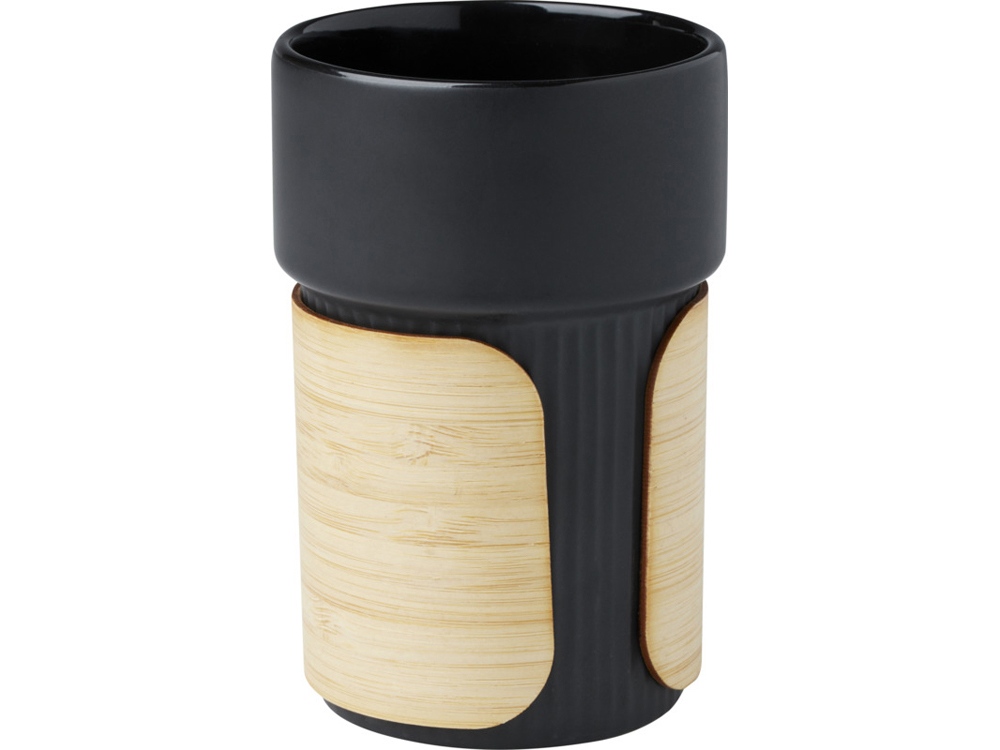 Fika стакан 340 мл с бамбуковым чехлом - сплошной черный купить оптом и в розницу с нанесением логотипа в Казани