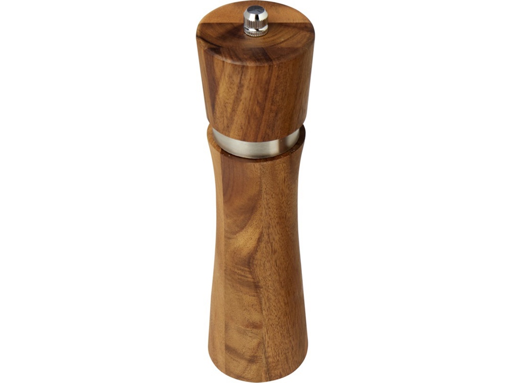 Мельница для соли и перца из древесины акации. Плавный поворотный механизм и корпус эргономичной формы обеспечивают комфортное перемалывание. FSC certified acacia wood.