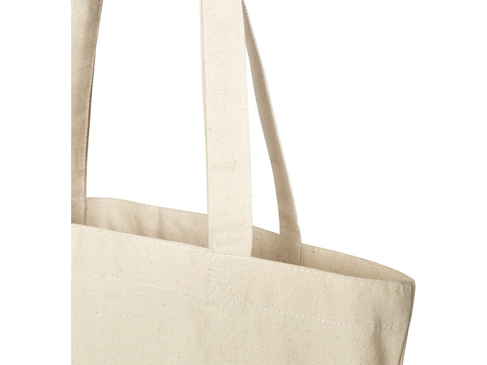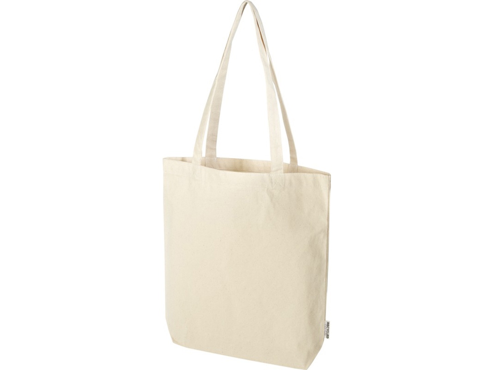Эко-сумка Florida с широким дном, изготовленная из 100% переработанного хлопка, сертифицированного согласно GRS, плотностью 270 г/м², станет более ответственным и долговечным выбором для ваших повседневных нужд. Благодаря широкому дну в нем предусмотрено дополнительное место для самых необходимых вещей на любой случай — от похода по магазинам до повседневной прогулки. Длина ручки: 30 см. Объем: 10 литр. Хлопок.