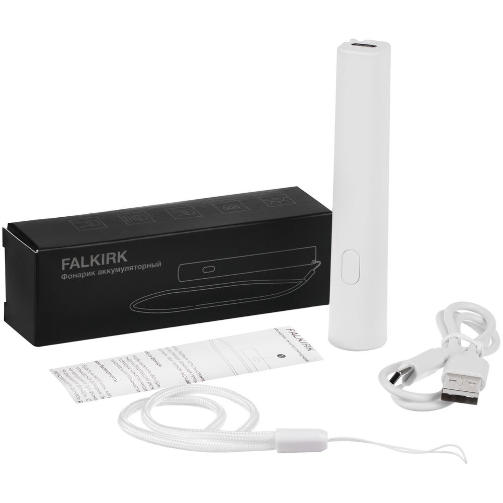 Фонарик аккумуляторный Falkirk, белый купить оптом и в розницу с нанесением логотипа в Казани