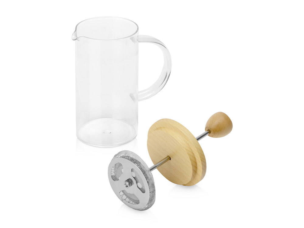 Элегантный френч-пресс с крышкой из букового дерева станет достойным подарком коллегам по работе, партнерам по бизнесу, сотрудникам на корпоративное мероприятие. Его объем рассчитан на одну стандартную кружку или две небольшие кофейные чашки. Френч-пресс идеально подойдет для заваривания не только кофе, а также чая или любых травяных напитков. Френч-пресс Downtime выполнен из высококачественных материалов: емкость сделана из термостойкого боросиликатного стекла, крышка из дерева, а поршень и пресс-фильтр с уплотнительным кольцом из высококачественной пищевой нержавеющей стали марки 304. Эта модель имеет удобную не нагревающуюся ручку эргономичной формы для более комфортного разливания напитка. Максимально рекомендованная температура воды составляет 120℃. Не рекомендуется использовать в посудомоечной машине и микроволновой печи.