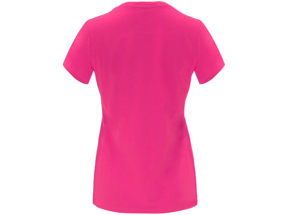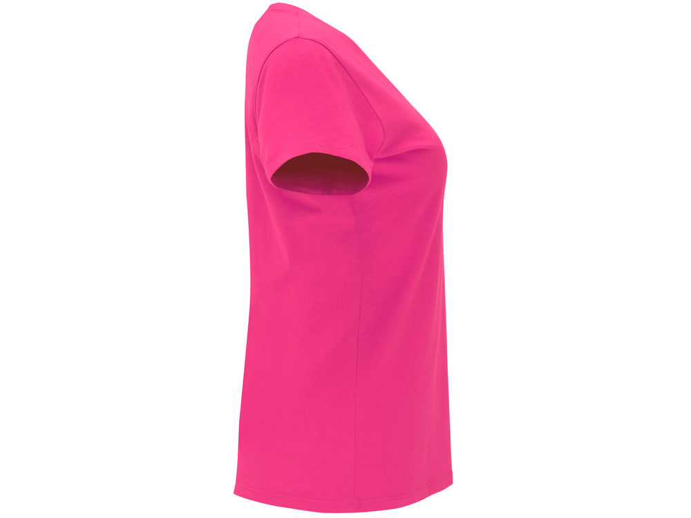 Женская приталенная футболка. Круглый вырез горловины обработан рибом 1х1. Шов горловины укреплен тесьмой.