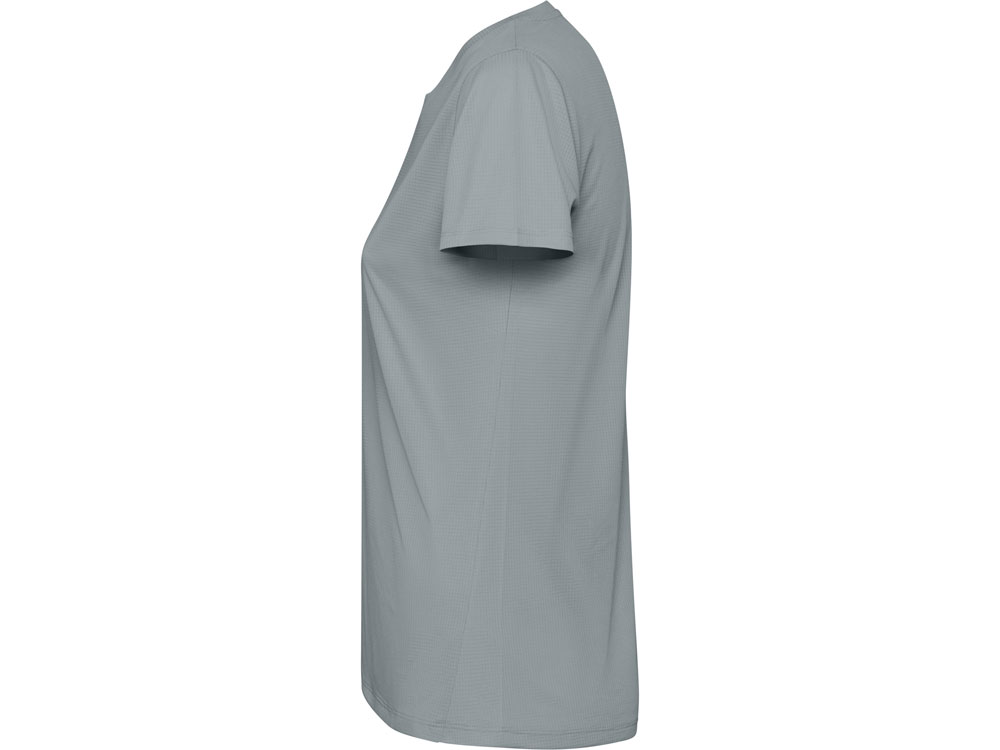 Женская футболка с коротким рукавом из технологичного полотна. Отстрочки в тон. Спинка с удлинением. Боковые швы со смещением вперед.
