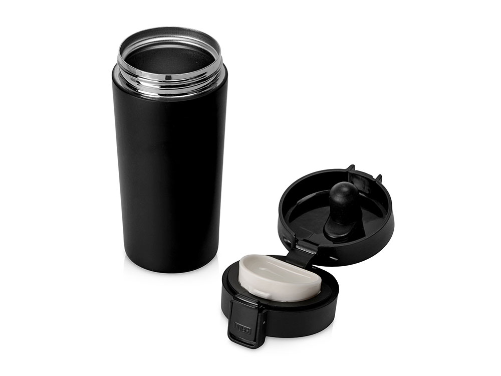 Герметичная термокружка Trigger 380мл, черный купить оптом и в розницу с нанесением логотипа в Казани