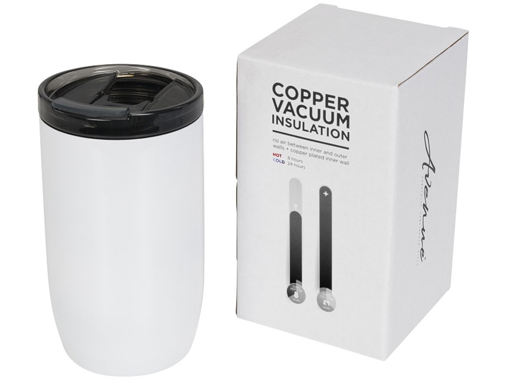 Герметичный термостакан Lagom 380 мл с медной вакуумной изоляцией. Прочный компактный стакан, идеально подходящий для путешествий. Герметичная откидная крышка с уплотнением и открывающимся отверстием для питья. Стакан с двойными стенками из нержавеющей стали и вакуумной медной изоляцией сохраняет напитки горячими в течение 8 часов и холодными в течение 24 часов. Конструкция стакана предотвращает образование конденсата на внешней стороне. Объем – 380 мл. Предлагается в подарочной коробке Avenue. Нержавеющая сталь.