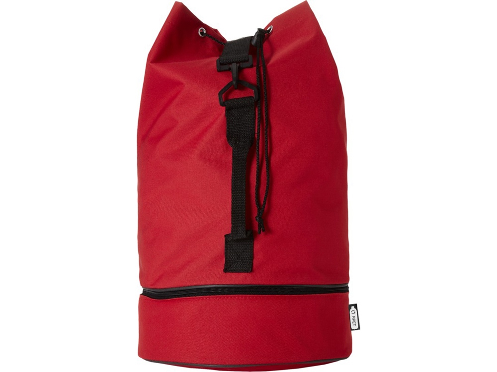 Водонепроницаемый спортивный вещмешок из переработанного РЕТ-пластика с вместительным 20 основным отделением объемом 20 литров, застежкой на шнурке, боковой ручкой и регулируемым плечевым ремнем. Также имеет отдельное нижнее отделение на молнии для небольших предметов.