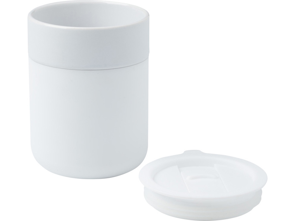 Керамический стакан Java с одной стенкой имеет простой и практичный дизайн для повседневного использования и оснащен силиконовой оболочкой для удобного захвата. Крышка с защитой от протекания. Объем: 330 мл. Керамика.
