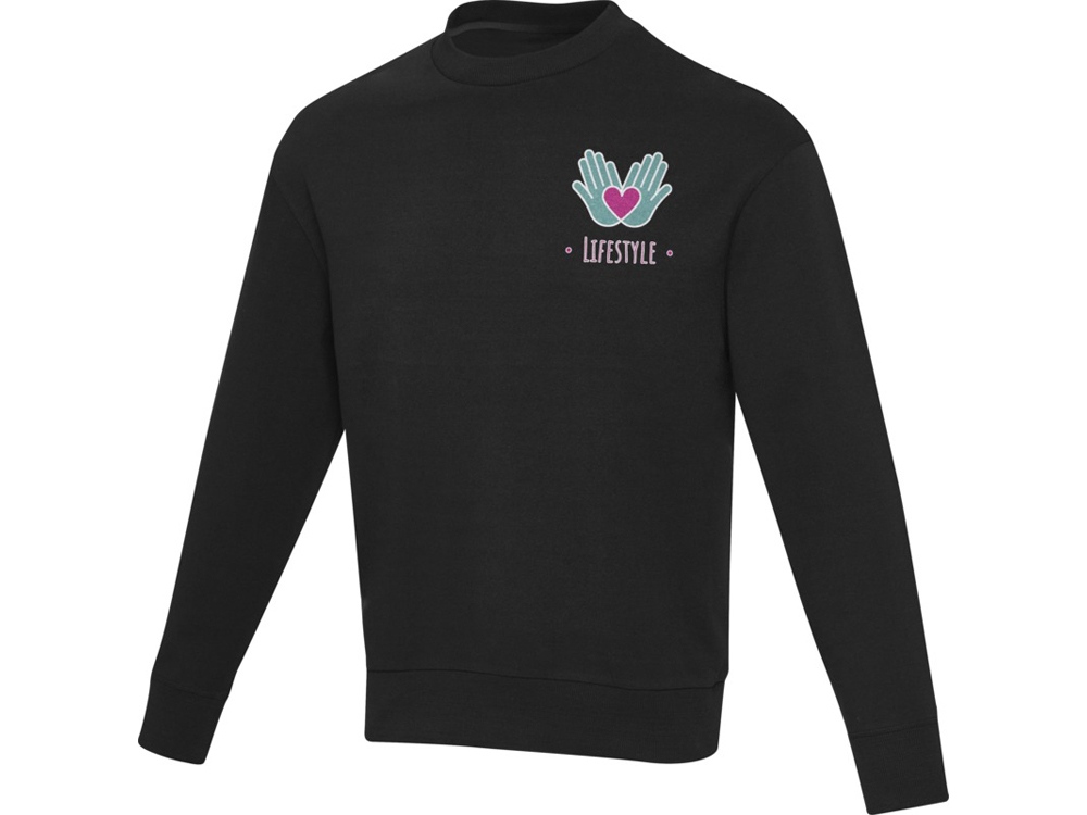 Jet унисекс Aware™ свитер с круглым вырезом из переработанных материалов - сплошной черный купить оптом и в розницу с нанесением логотипа в Казани