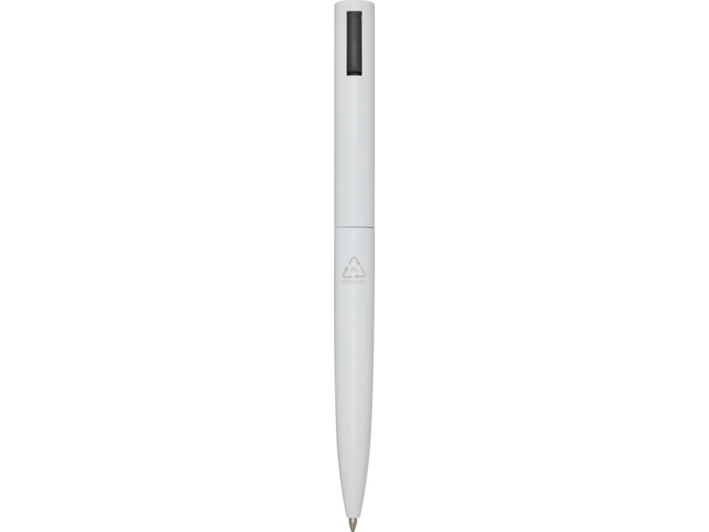 Шариковая ручка, верхняя часть корпуса которой изготовлена из переработанного пластика, а нижняя часть — из переработанного алюминия. Зажим изготовлен из железа. Цвет чернил: синий. Длина непрерывной линии: 1000 метров. Размер пера: 1,0 мм. Recycled Aluminium.