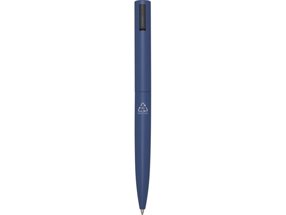 Шариковая ручка, верхняя часть корпуса которой изготовлена из переработанного пластика, а нижняя часть — из переработанного алюминия. Зажим изготовлен из железа. Цвет чернил: синий. Длина непрерывной линии: 1000 метров. Размер пера: 1,0 мм. Recycled Aluminium.