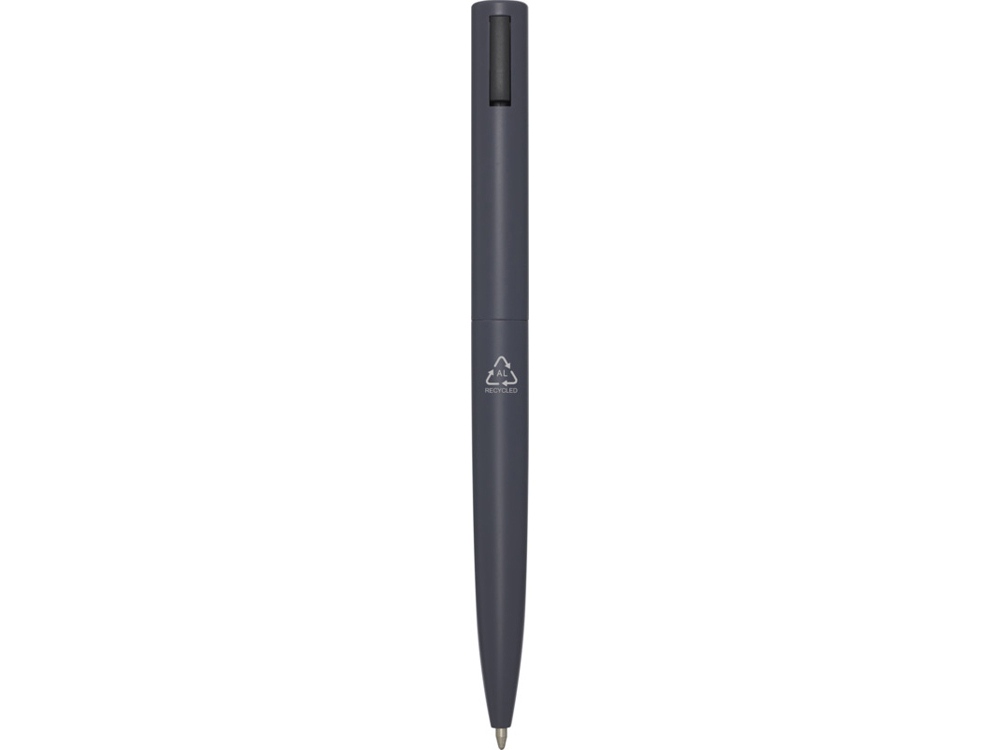 Шариковая ручка, верхняя часть корпуса которой изготовлена из переработанного пластика, а нижняя часть — из переработанного алюминия. Зажим изготовлен из железа. Цвет чернил: синий. Длина непрерывной линии: 1000 метров. Размер пера: 1,0 мм. Recycled Aluminium.