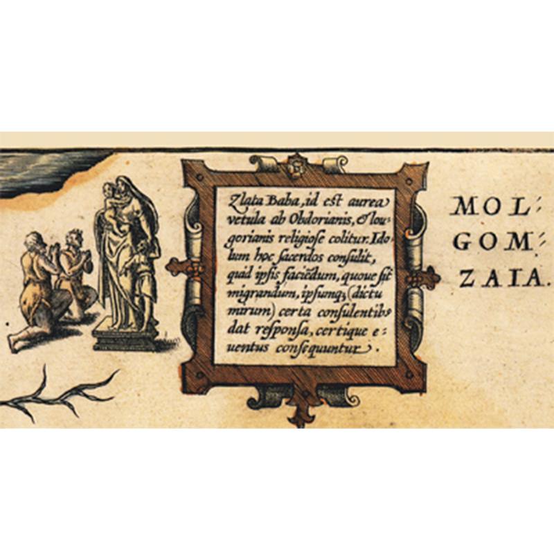 • Необыкновенный интерес вызывают тексты с пояснениями к различным местам и областям необъятной Тартарии: текст о Золотой Бабе, красное знамя и рисунок, поклоняющихся ему людей. Весьма интересны и другие пояснительные тексты.