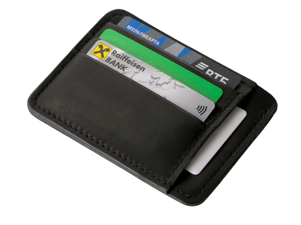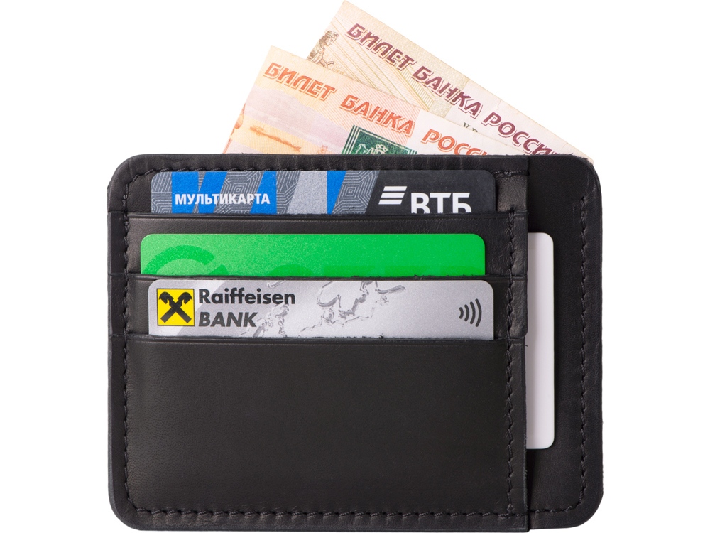 Картхолдер кожаный для автодокументов, черный купить оптом и в розницу с нанесением логотипа в Казани