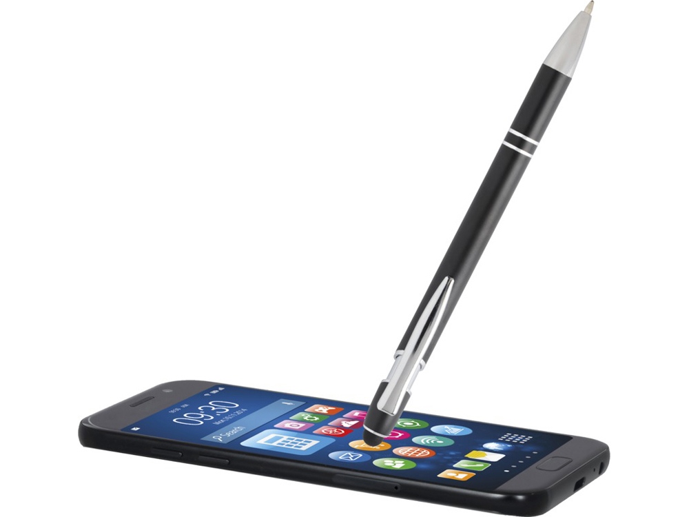Шариковая ручка Kish с серебряным покрытием имеет корпус из переработанного алюминия и сенсорный стилус из силикона. Переработанный алюминий уменьшает количество отходов на свалках и помогает сохранять природные ресурсы для сокращения выбросов парниковых газов. Цвет чернил: черный. Длина непрерывной линии: 800 метров. Размер пера: 1,0 мм. Recycled Aluminium.
