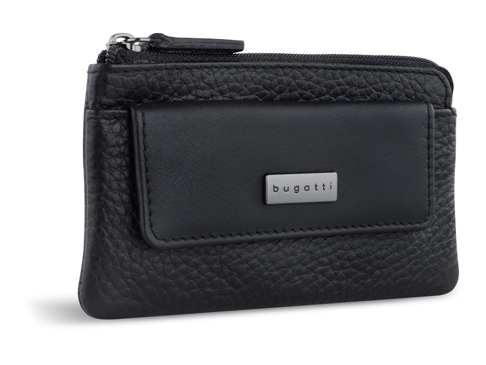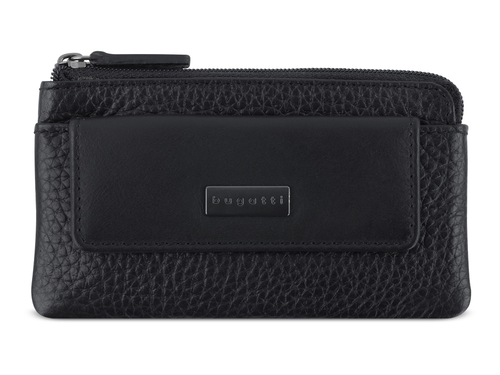 Ключница BUGATTI Sina, черная, воловья кожа/полиэстер, 13х1,5х7 см