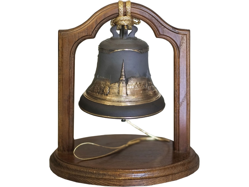 Колокол сувенирный весом 1кг Царский на дубовой подставке. Поверхность колокола матированная с вызолочением. Настольные колокола делают те же производства, что льют и большие колокола для российских церквей. Поэтому они и звучат тем неповторимым малиновым звоном, который всегда ценился в отечественных колоколах. Настольный колокол - это ни только прекрасная интерьерная композиция, но и просто живая” частичка России. Ударьте в него, закройте глаза и слушайте, слушайте...