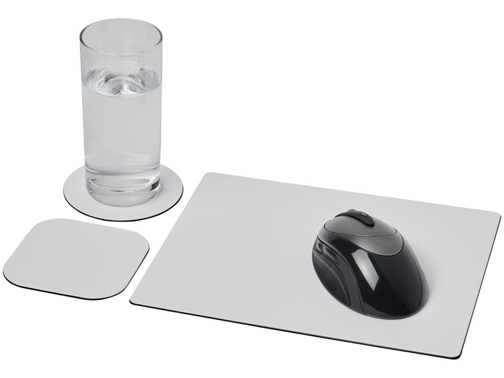 Комплект Brite-Mat® из коврика для мыши и подставки 1. Поставляется с ковриком для мыши Brite-Mat и набором соответствующих подставок. Набор состоит из прямоугольного коврика для мыши (0,3 x 19 x 21 см), квадратной подставки (0,3 х 9,5 х 9,5 см) и круглой подставки (0,3 x ø9,5 см). Ламинированная бумага и переработанная пластмасса.