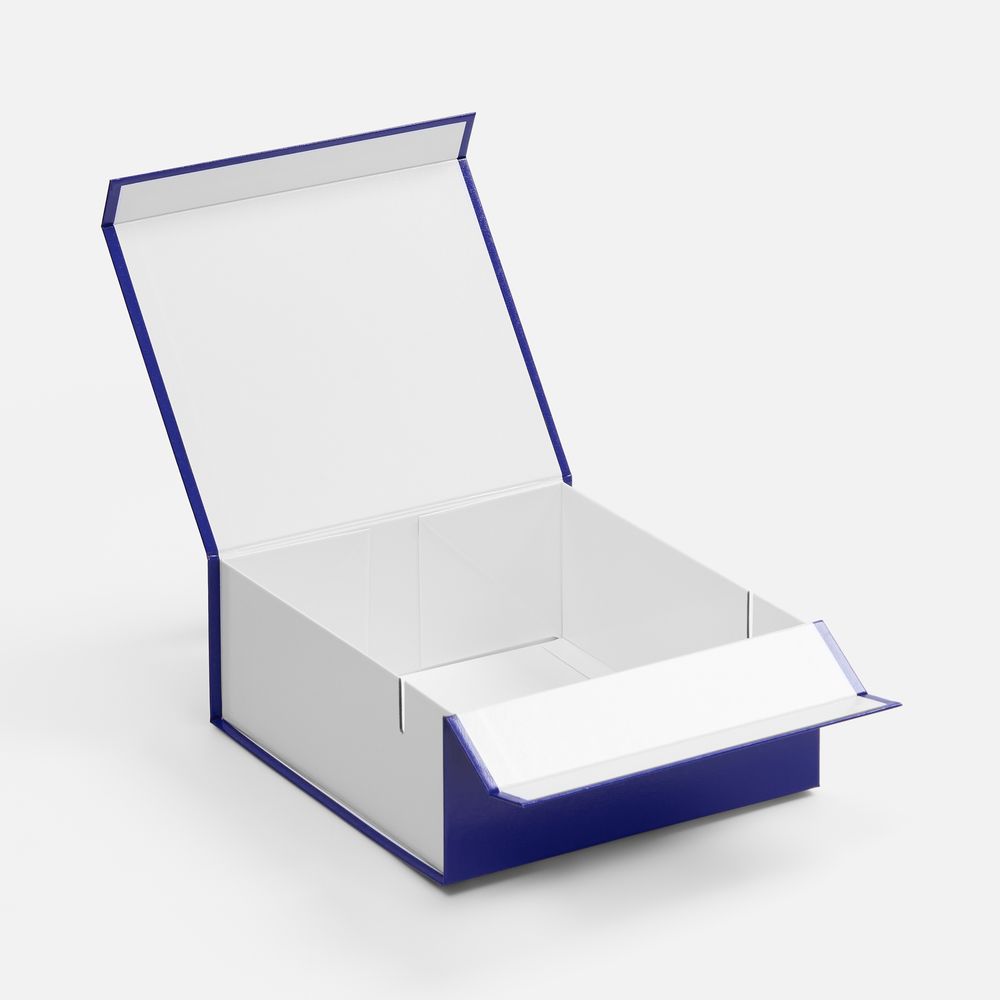 Плотная коробка из переплетного картона толщиной 2 мм с практичной конструкцией на двух створках. Складная система с уже нанесенным двусторонним скотчем позволяет быстро собрать коробку без дополнительных инструментов. Лайнер с полуглянцевым ламинированием устойчив к повреждениям и надолго сохраняет безупречный вид.