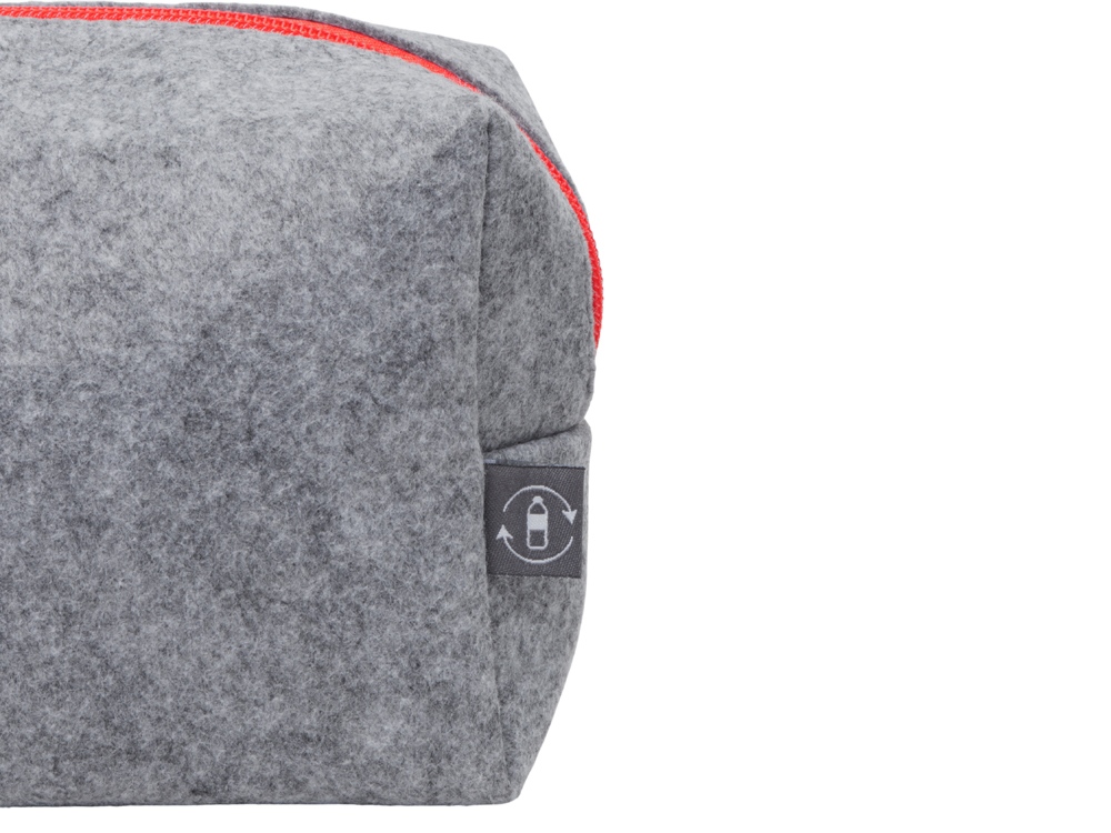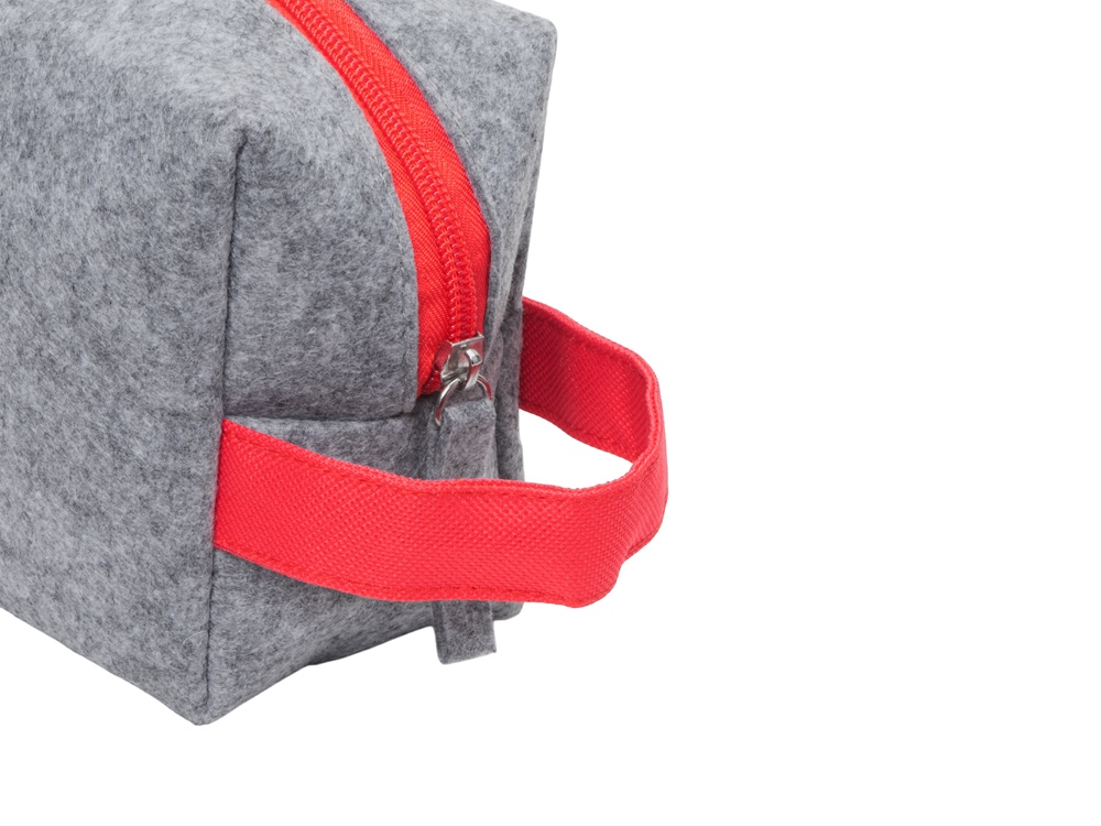 Косметичка из РПЕТ фетра с ручкой Felt, серый с красным купить оптом и в розницу с нанесением логотипа в Казани