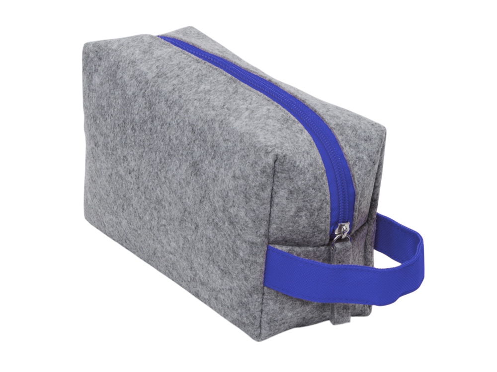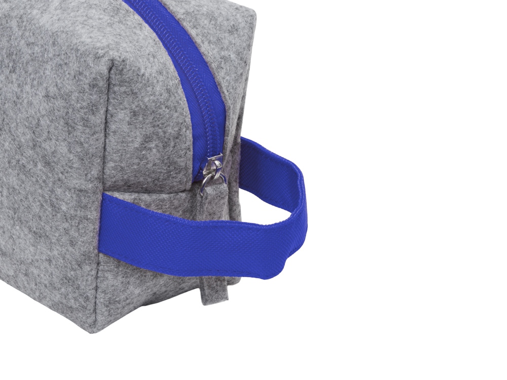 Косметичка из РПЕТ фетра с ручкой Felt, серый с синим купить оптом и в розницу с нанесением логотипа в Казани