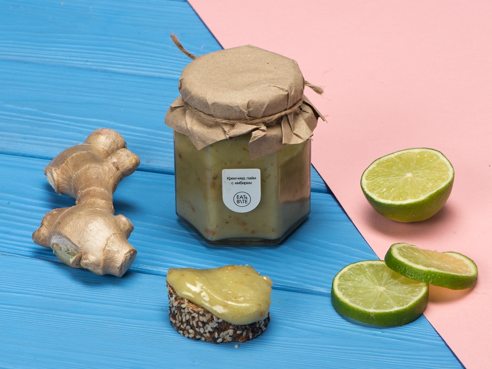 Крем-мёд с лаймом и имбирем 250 гр купить оптом и в розницу с нанесением логотипа в Казани