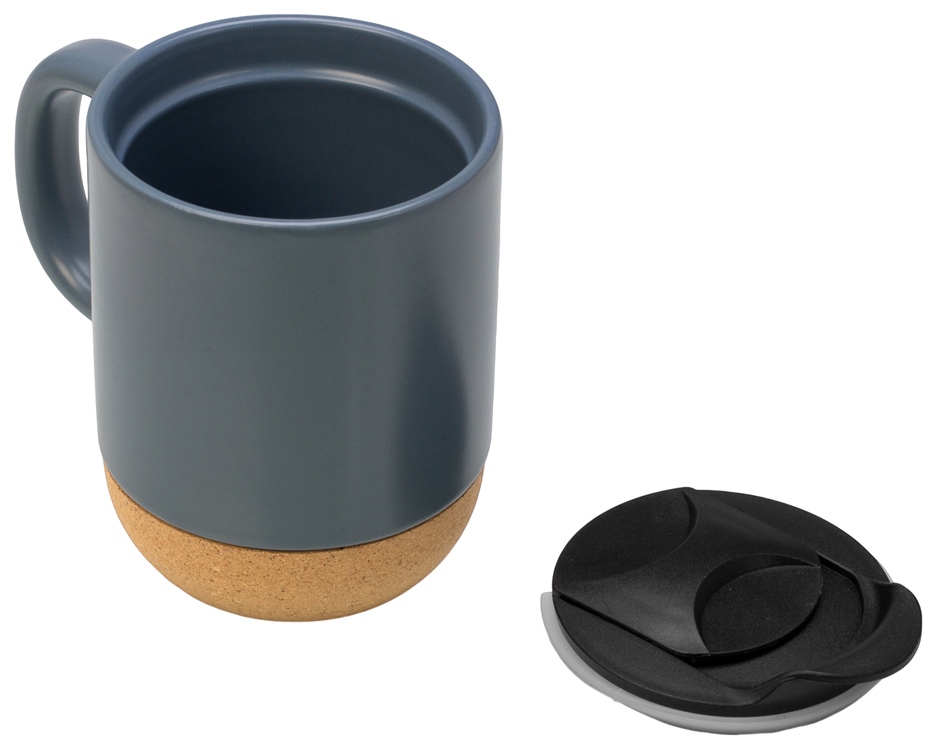 Кружка Denpasar с пробковым дном и крышкой, цветная с двух сторон, антрацит купить оптом и в розницу с нанесением логотипа в Казани