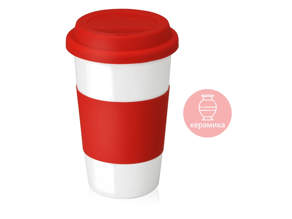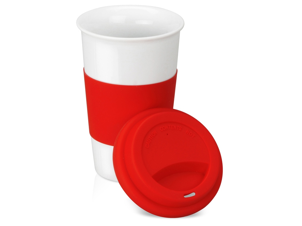Кружка с силиконовой крышкой и манжетой Нью-Йорк 300мл, красный купить оптом и в розницу с нанесением логотипа в Казани