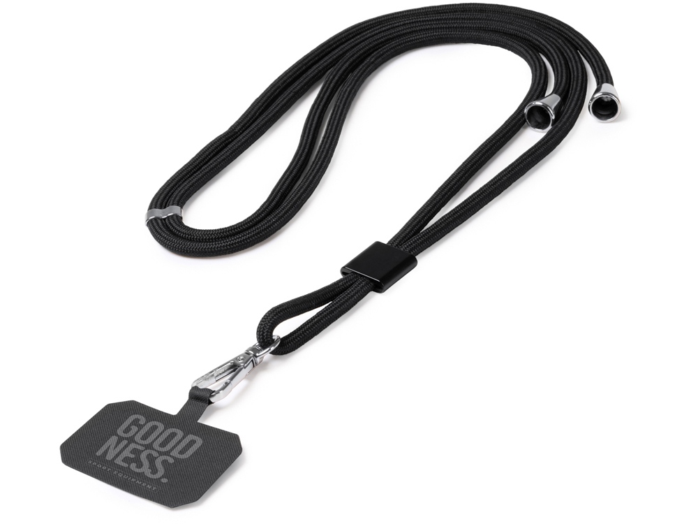 Держатель для мобильного телефона на шнурке из переработанного полиэстера RPET. Регулируемый ремешок, в комплект входит карабин.