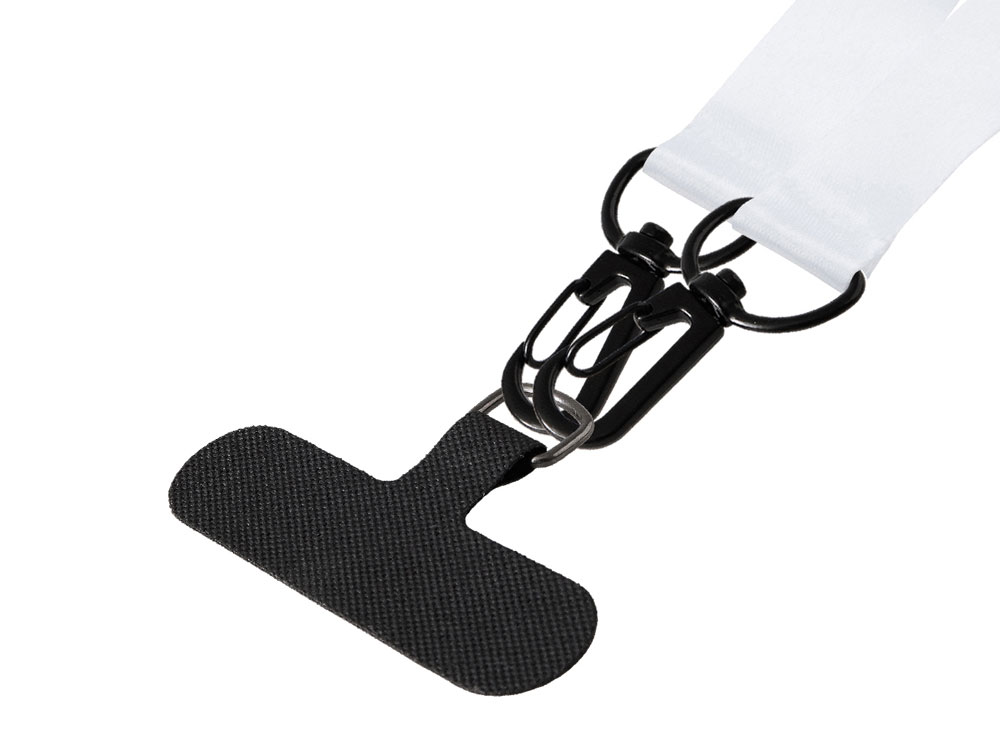 Ланъярд 2 см под сублимацию с 2-мя трендовыми карабинами и узким держателем для телефона из ПЭ, черный