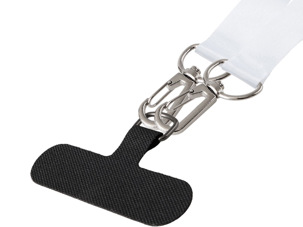 Ланъярд 2 см под сублимацию с 2-мя трендовыми карабинами и узким держателем для телефона из ПЭ, серебристый