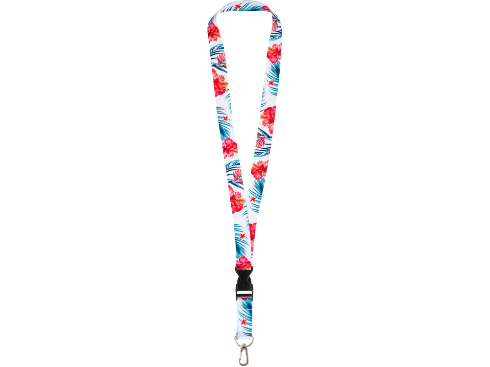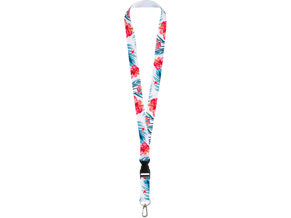 Ланъярд 2 см под сублимацию с карабином и межуровневым замком, серебристый