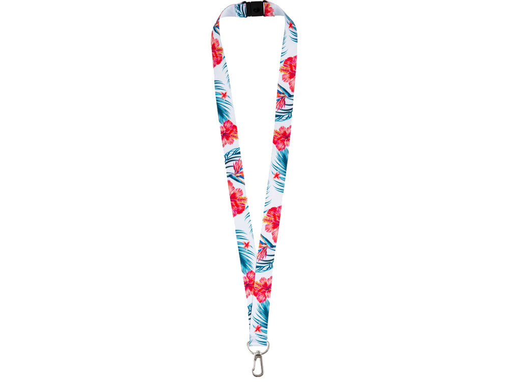Ланъярд 2 см под сублимацию с карабином и замком обрыва, серебристый