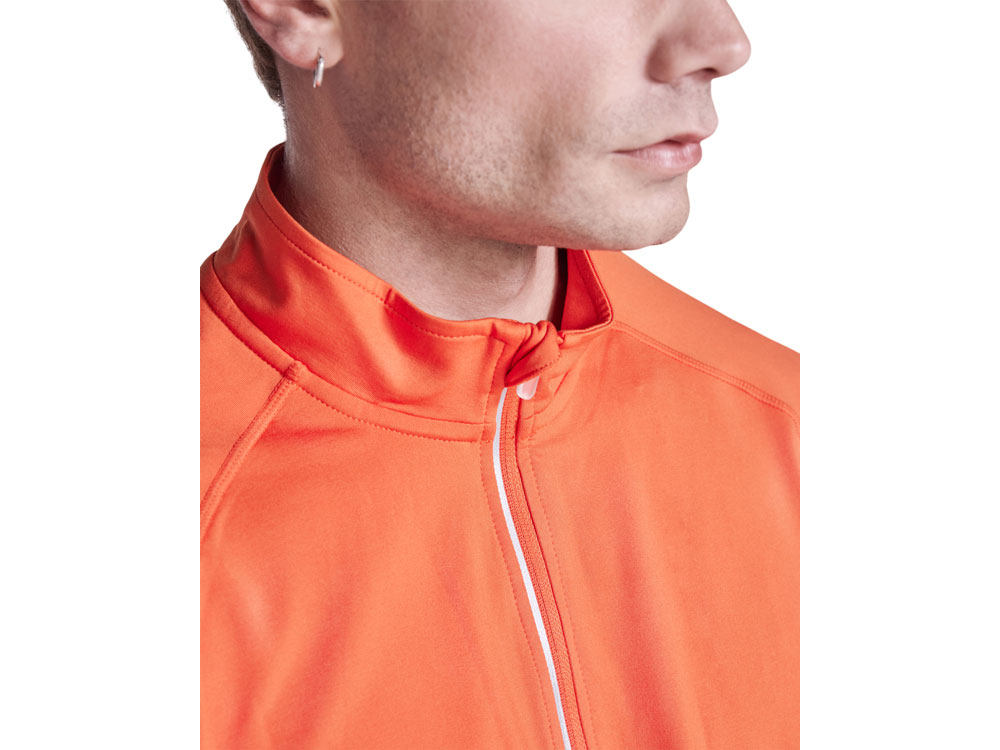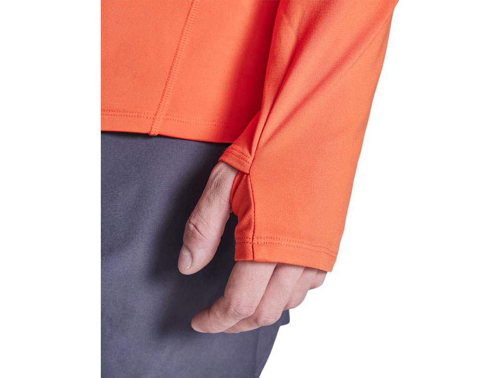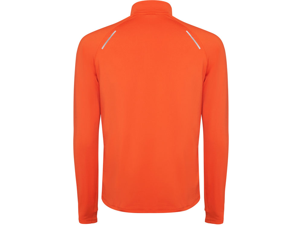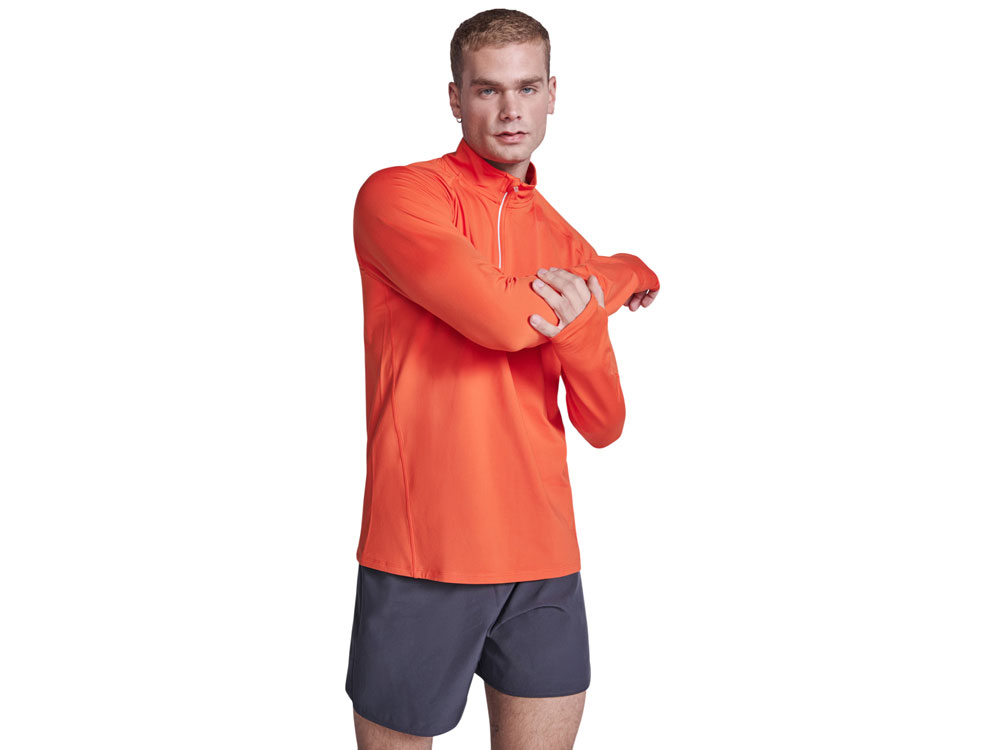 Лонгслив с рукавом реглан из технологического плотна, ворот на молнии со светоотражающей деталью. Усиленные швы. Манжеты с отверстием для большого пальца. Светоотражающая деталь на спинке. Низ спинки длиннее переда. Изнанка с теплым начесом.