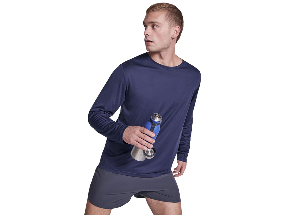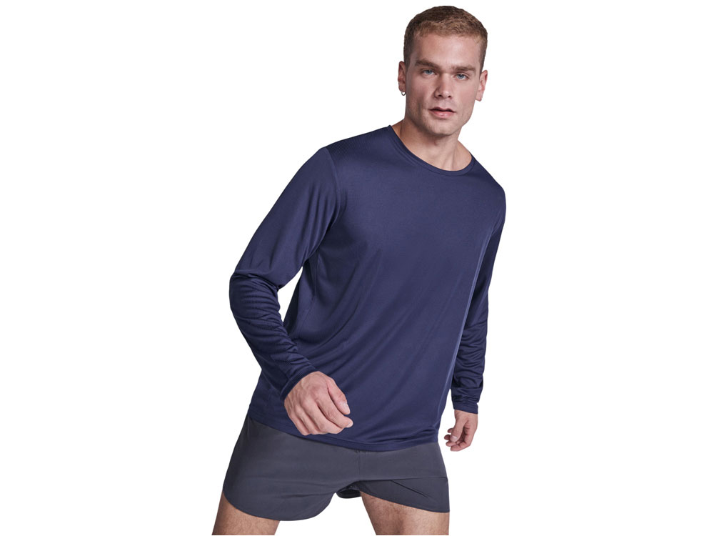 Унисекс лонгслив из технологичного полотна. Отстрочки в тон. Спинка с удлинением. Боковые швы со смещением вперед.