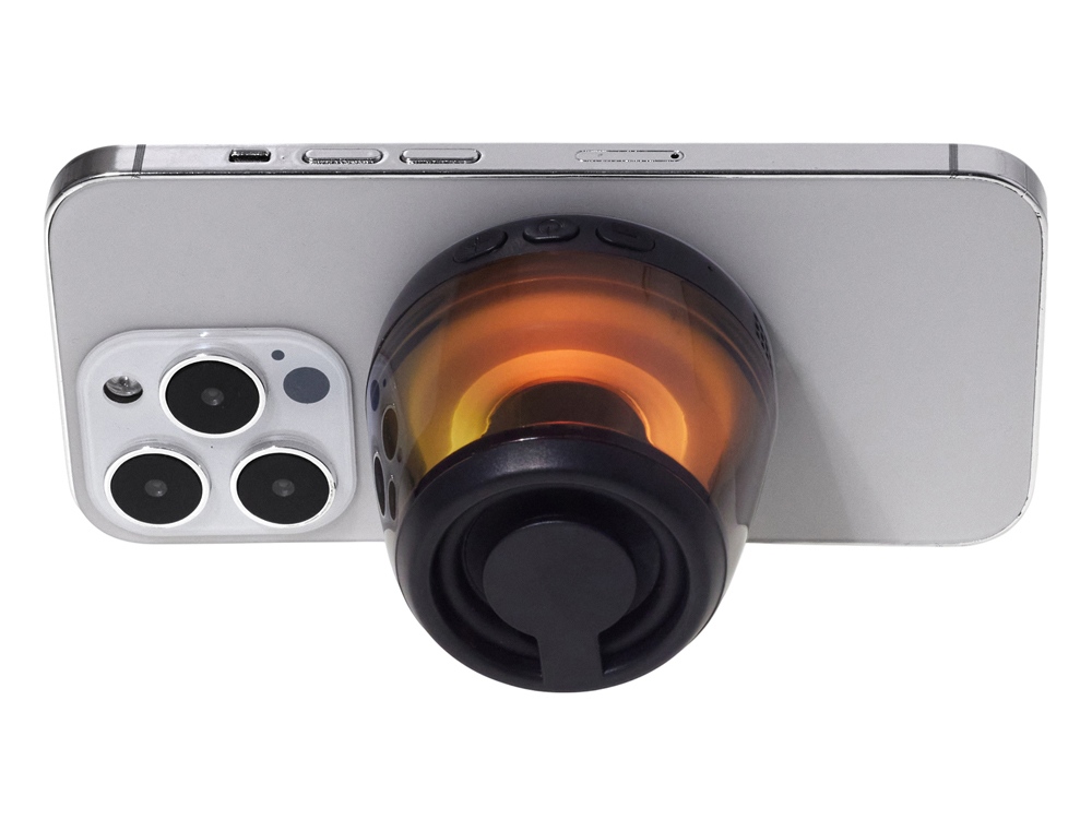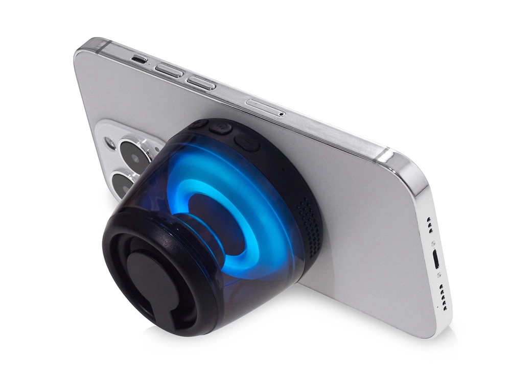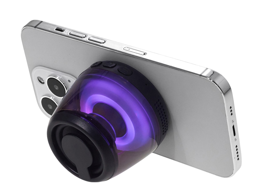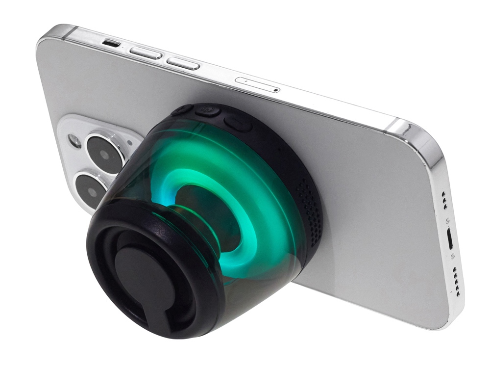 Современная магнитная Bluetooth-колонка колонка крепится к любому смартфону (iPhone -нативно, к другим -благодаря кольцу из комплекта). Это позволяет не только освободить руки, но и добавляет удобную подставку телефону. Динамик 40мм и мощностью 5 Вт обеспечивает сильное и насыщенное звучание даже в компактном корпусе. RGB подсветка имеет несколько режимов (переключение по трехразовому нажатию кнопки ВКЛ.). В комплекте кроме кольца – зарядный кабель USB-C и ремешок-ланъярд. Может принимать звонки и имеет разъем для micro SD карт памяти. Магнитные крепления MagSafe – прикрепите колонку к любому смартфону или металлической поверхности. Выполняет роль подставки. Насыщенный звук – bluetooth версии 5.3 и динамик мощностью 5 Вт обеспечивают более 4 часов качественного звучания Стильная и компактная – несколько режимов RGB подсветки На 39% состоит из переработанного ABS пластика