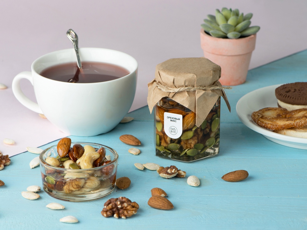 | Состав | мёд натуральный, грецкий орех, миндаль, кешью, тыквенные семечки |
