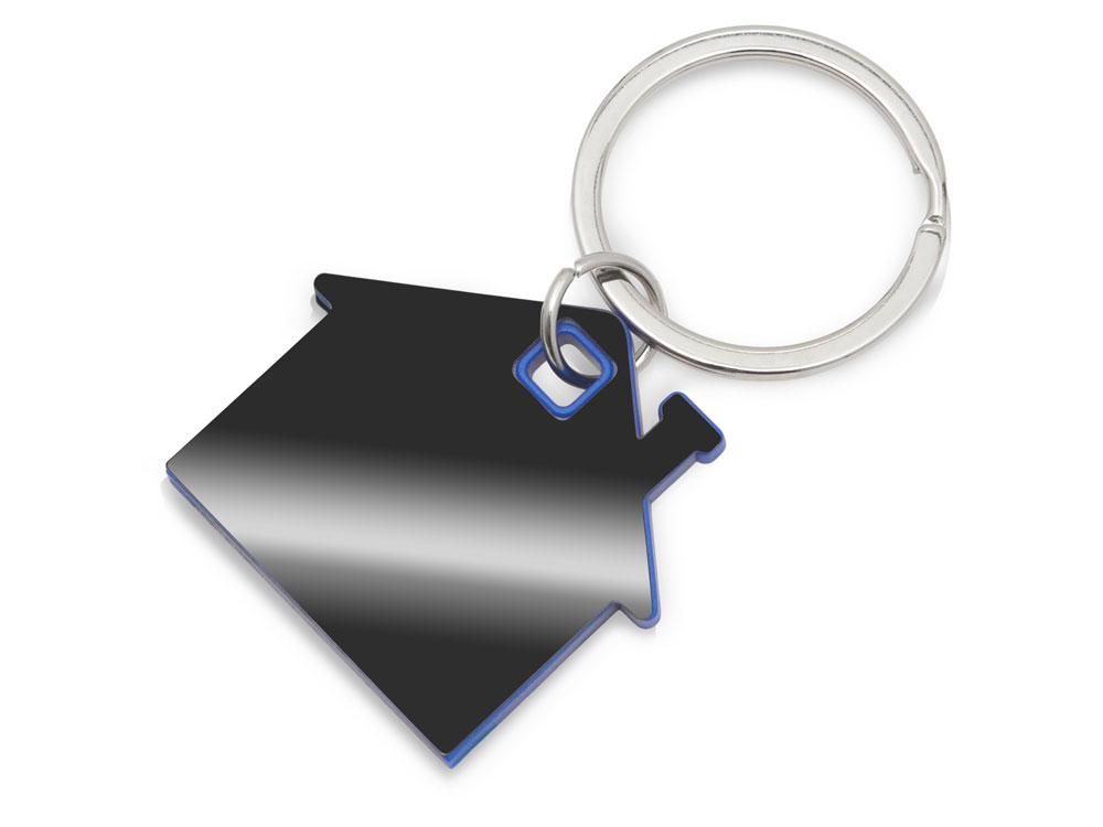 Металлический брелок с пластиковой цветной вставкой SteelPop House, серебристый с синим купить оптом и в розницу с нанесением логотипа в Казани