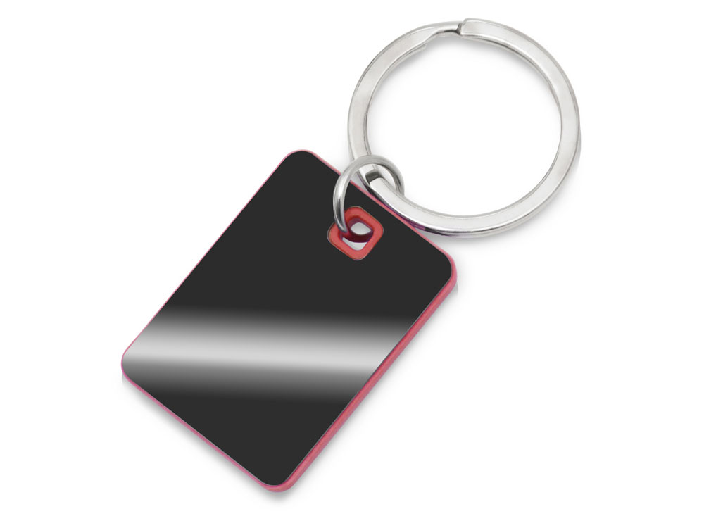 Металлический брелок с пластиковой цветной вставкой SteelPop Rct, серебристый с красным купить оптом и в розницу с нанесением логотипа в Казани