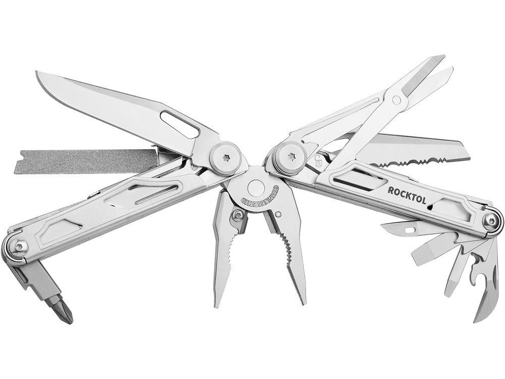 Этот сверхпрочный мультитул создан для выполнения более сложных работ профессионалами и любителями активного отдыха. В комплект входят сменные кусачки для проволоки, пила по дереву со сменой лезвий, прямые и зазубренные ножи, а также очень большие пружинящие ножницы. Все эти основные инструменты доступны в сложенном положении, обеспечивая быстрый доступ к наиболее часто используемым инструментам. Сменные кусачки изготовлены из высококачественного сплава с HRC до HRC51-55, что делает их более прочными и облегчает перерезание проводов. В комплект поставки входит дополнительный набор кусачек для замены проволоки. Напильник и пильные диски по дереву взаимозаменяемы для расширения функций при сохранении компактности набора инструментов. Напильник по дереву / металлу покрыт наждаком твердостью HRC 52-54. В комплект поставки входят два пильных полотна из высококачественной стали с черным покрытием для смены лезвий. Этот многофункциональный инструмент включает в себя 29 инструментов, включая обычные плоскогубцы, плоскогубцы с игольчатым наконечником, сменные кусачки, устройства для снятия проволоки, прямые и зазубренные ножи, сменную пилу по дереву, напильник по дереву / металлу, большие пружинящие ножницы, шило, открывалки для бутылок и банок, отвертки с прорезями и отвертки для стаканов, сменную насадку с 8 наборами двухсторонних бит (SP8 + SP4, TT25 + TT20 , TT15+TT10, SL6 +SL5, SL4 +SL3, H5 +H4, H3 +H2.5, PH2+PH1). Все инструменты оснащены предохранителями для уверенного использования. Прочный многофункциональный инструмент изготовлен из сверхпрочной нержавеющей стали 3Cr13, которая эффективно предотвращает коррозию и гарантирует длительный срок службы. Контурная рукоятка с 3D-обработкой и углублениями обеспечивает удобный и надежный захват. Это универсальный набор инструментов для любой работы, будь то дома, на производстве или на улице. Набор инструментов оснащен прочным нейлоновым чехлом с застежкой на пуговицу, имеет передний карман для хранения бит и боковые карманы для хранения пильных полотен. Сзади также имеется петля для ремня шириной 2,2 дюйма, позволяющая носить универсальный мультитул где угодно. Это удобный инструмент для хранения в машине или отличный компаньон для выживания на природе, кемпинга, строительства и самостоятельных проектов.