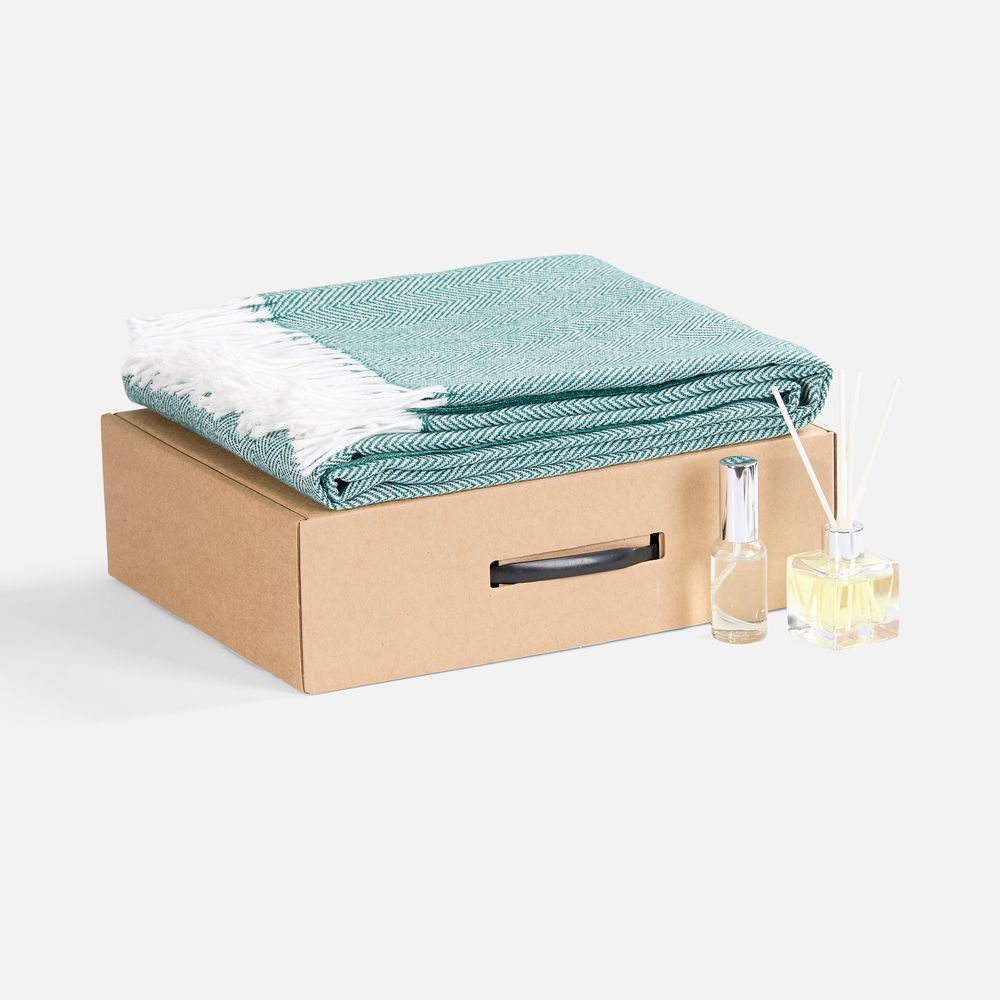 В этом элегантном комплекте — нежный плед с изящным рисунком и стильный ароматический диффузор с палочками, создающий атмосферу уюта и гармонии в любом пространстве. Такой набор — это не просто продукт, а полноценное эмоциональное впечатление: тепло, комфорт и расслабление в одном флаконе. Он идеально подходит для подарков, корпоративных сувениров и сезонных акций.