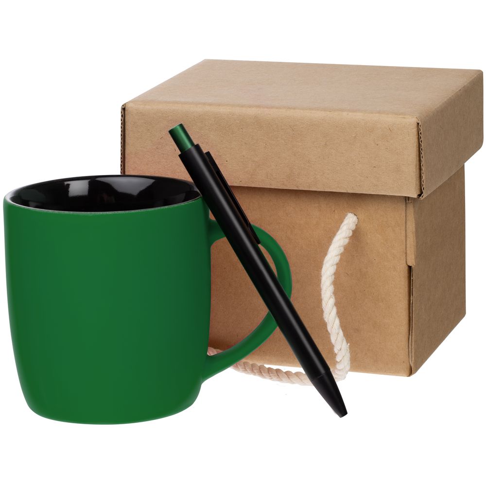 Набор Color Block: кружка и ручка, зеленый с черным купить оптом и в розницу с нанесением логотипа в Казани