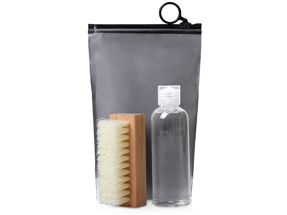 Чистая обувь — за пару минут. Этот компактный набор с очищающей жидкостью и щёткой упакован в удобный пакет с зип-локом, чтобы вы могли ухаживать за обувью где угодно. Идеально для путешествий, офиса и повседневной жизни.