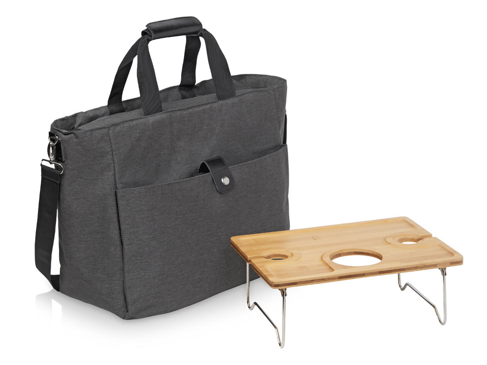 Уникальное предложение для тех, кто собрался на пикник, пляж или дачу! Большую вместительную сумку-холодильник удобно использоваться для транспортировки охлаждённых или подогретых продуктов и бутылок с разнообразными напитками. Внутри по бокам сумки расположены 2 изотермических кармана для высоких бутылок. Основное отделение на молнии. 2 ручки с фиксатором на липучке для удобства носить в руке. Большой наружный карман на кнопке. Съемная лямка на плечо регулируется по длине. Выгодный бонус - штопор с бамбуковой ручкой в комплекте. К сумке в наборе идет складной столик из натурального бамбука. Изготовленный из экологически чистого и долговечного бамбука, этот столик не только красив, но и практичен. Его легкие и прочные металлические ножки складываются одним движением, обеспечивая компактное хранение и удобную транспортировку. Возьмите его с собой на пикник, на пляж, на дачу или используйте как стильный приставной столик дома – он везде будет к месту! Важные особенности: - Элегантный дизайн из натурального бамбука: Придаст особый шарм любой обстановке. - Надежная фиксация напитков: Два углубления для бокалов и центральное отверстие для бутылки – забудьте о пролитых напитках! - Компактность и мобильность: Легко складывается и не занимает много места при хранении и транспортировке. - Прочность и долговечность: Натуральный бамбук и качественные металлические ножки прослужат вам долго. - Идеально для романтических вечеров, пикников и уютных посиделок.