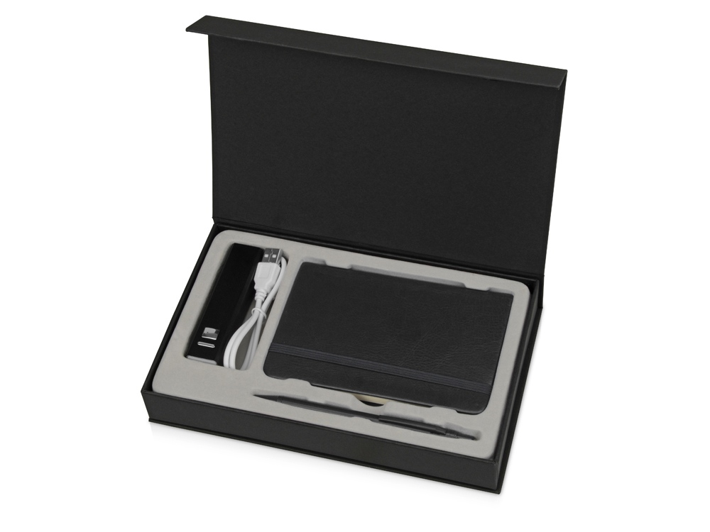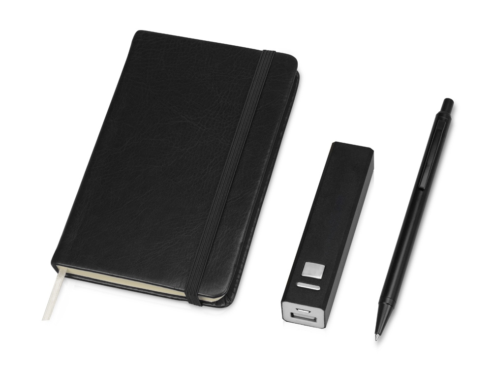 Набор для записей с пауэрбэнком Ион, черный (Р) купить оптом и в розницу с нанесением логотипа в Казани