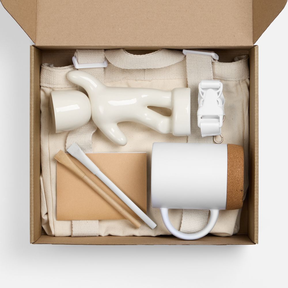 | Материал | рюкзак - хлопок, плотность 280 г/м²; набор для выращивания Funky Buddy - керамика; кружка - каменная керамика, подставка - пробка; коробка - микрогофрокартон, Т-23Е; лента - нейлон, пластик; металл; блокнот, ручка - картон |