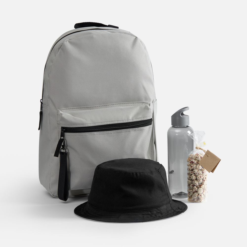 Материал рюкзак - полиэстер, 600D; панама - хлопок 100%, плотность 220 г/м²; бутылка - пластик, ПЭТ; ремувка - полиэстер 100%, металл