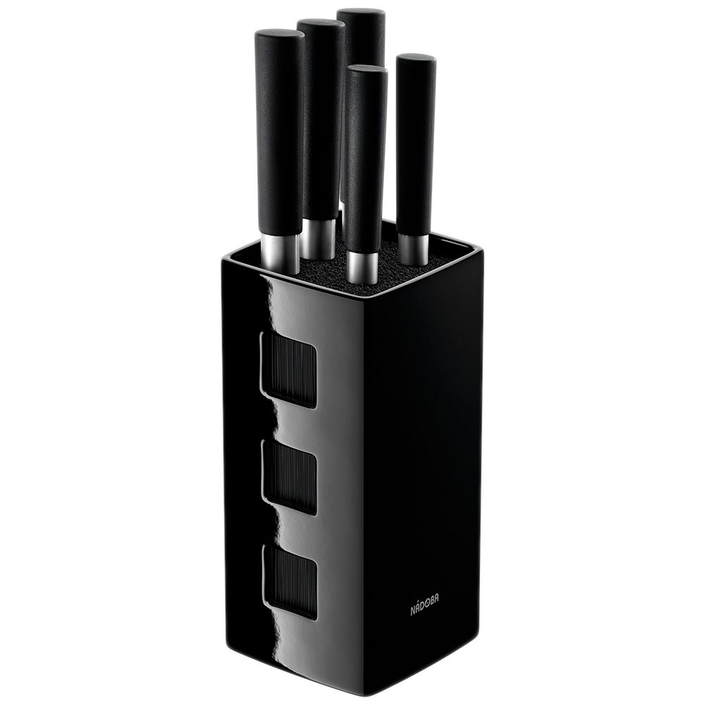 Набор из 5 кухонных ножей в оригинальной подставке из керамики станет не только помощником на кухне, но и ее главным украшением. Внутри блока находятся пластиковые волокна, которые позволяют хранить ножи в произвольном порядке и различном количестве, они не тупят лезвия и легко моются.