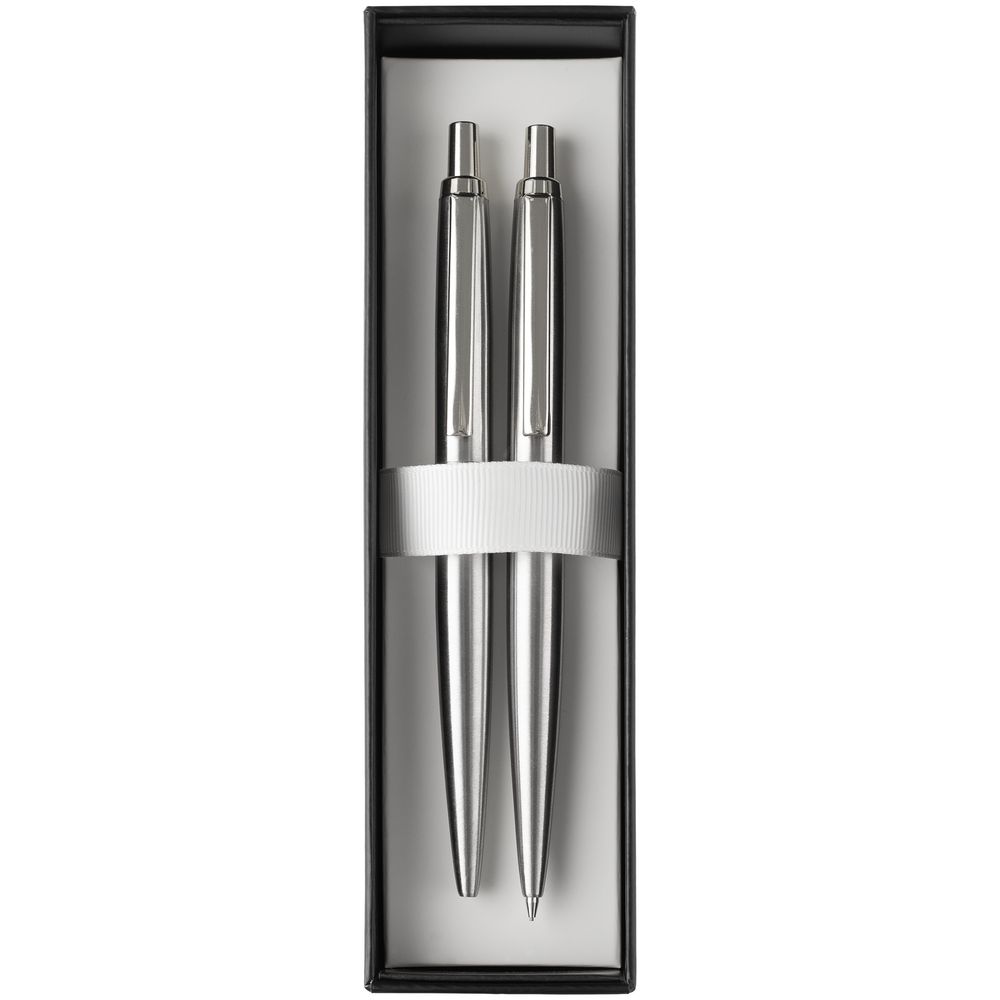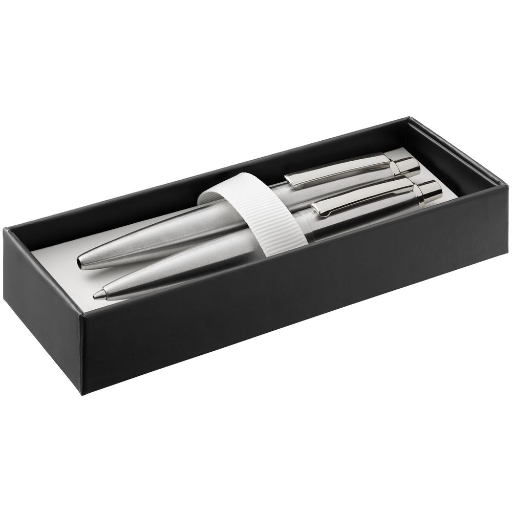 Набор из механического карандаша и ручки Poetica, серебристый купить оптом и в розницу с нанесением логотипа в Казани
